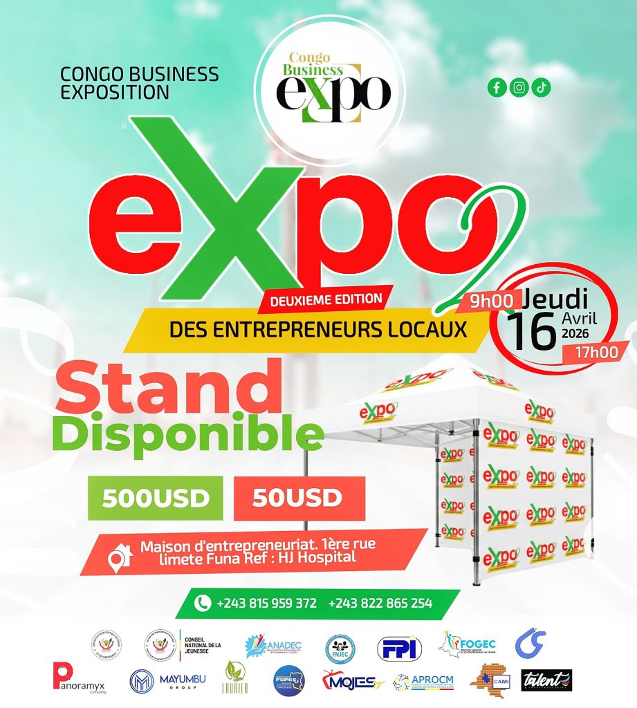 La Congo Business Expo revient pour sa deuxième édition le jeudi 16 avril 2026, de 09h00 à 17h00, à la Maison de l’Entrepreneuriat de Limete Funa. Cette journée sera consacrée à la promotion des entrepreneurs congolais et à la valorisation des produits locaux, dans un contexte où les PME jouent un rôle de plus en plus déterminant dans la dynamique économique du pays.